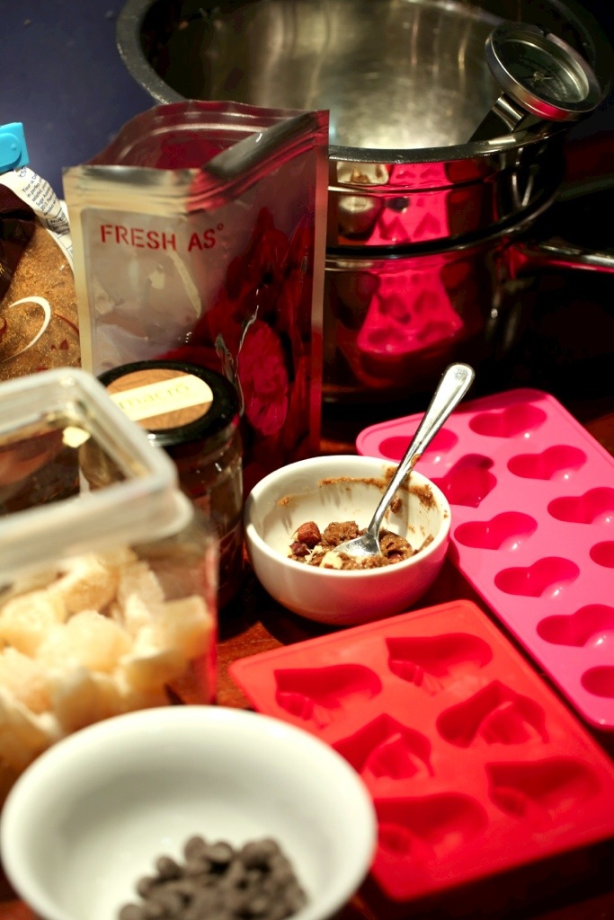 I failed at tempering the chocolate so I don’t feel that I have anything useful to offer you on the subject. Having the skill to temper chocolate is a great way to show off but isn’t really necessary (the untempered chocolates will have to be stored in the fridge though).