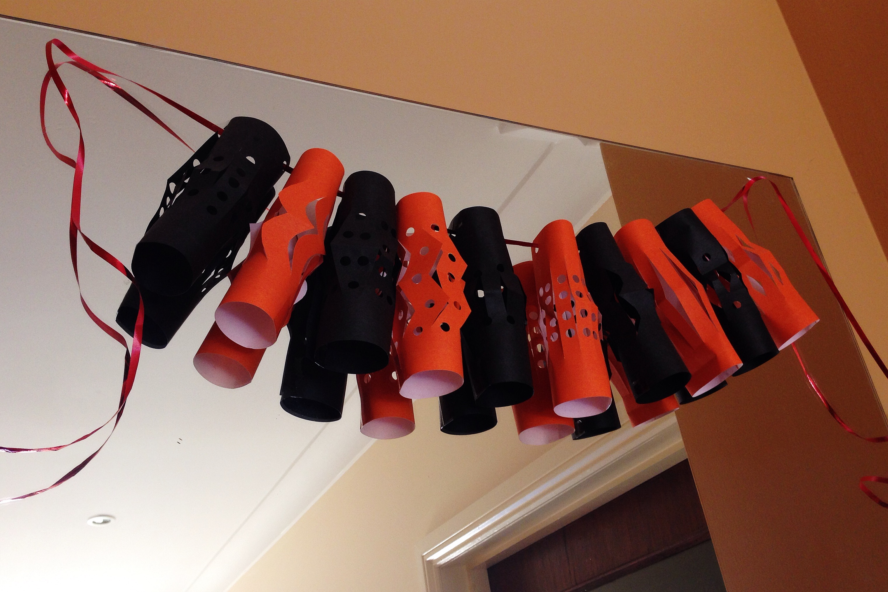 Halloween isn’t a tradition that I have grown up with but it looks as if it is one that we are going to start. My five year old daughter insisted on making some Halloween decorations and hanging them on the mirror in our home’s entrance. They have been there since February!