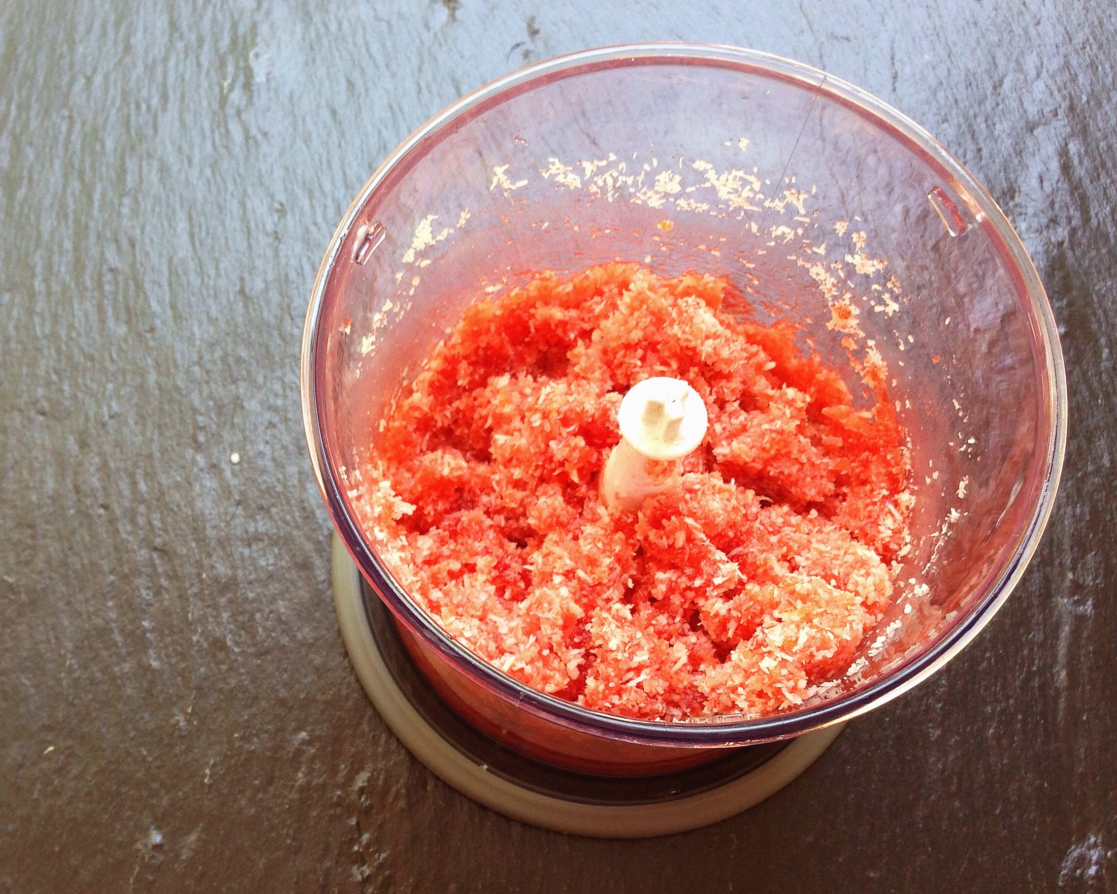 Place the remaining glace cherries in a food processor and blitz until fine. Add the coconut and process until just combined.
