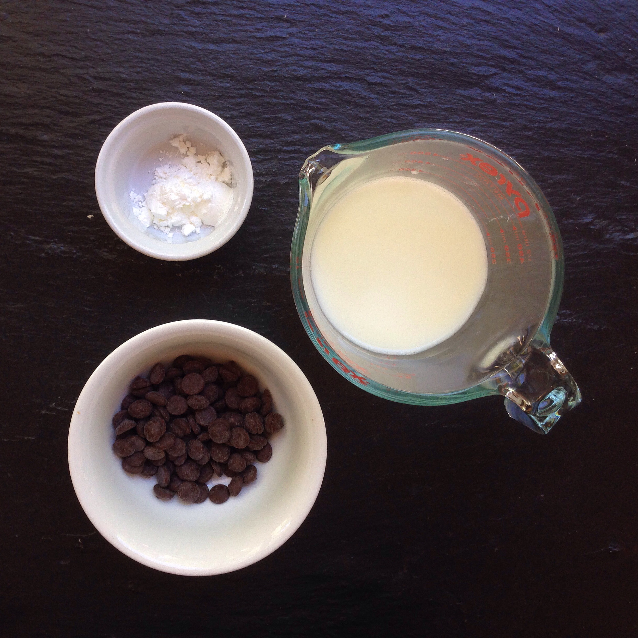 Whisk together the milk and cornflour in a saucepan. When the cornflour has dissolved heat it on the stove until it starts to simmer. Remove from the heat, add chocolate, and stir until smooth. The sauce will thicken as it cools. Serve hot or cold, as you prefer.