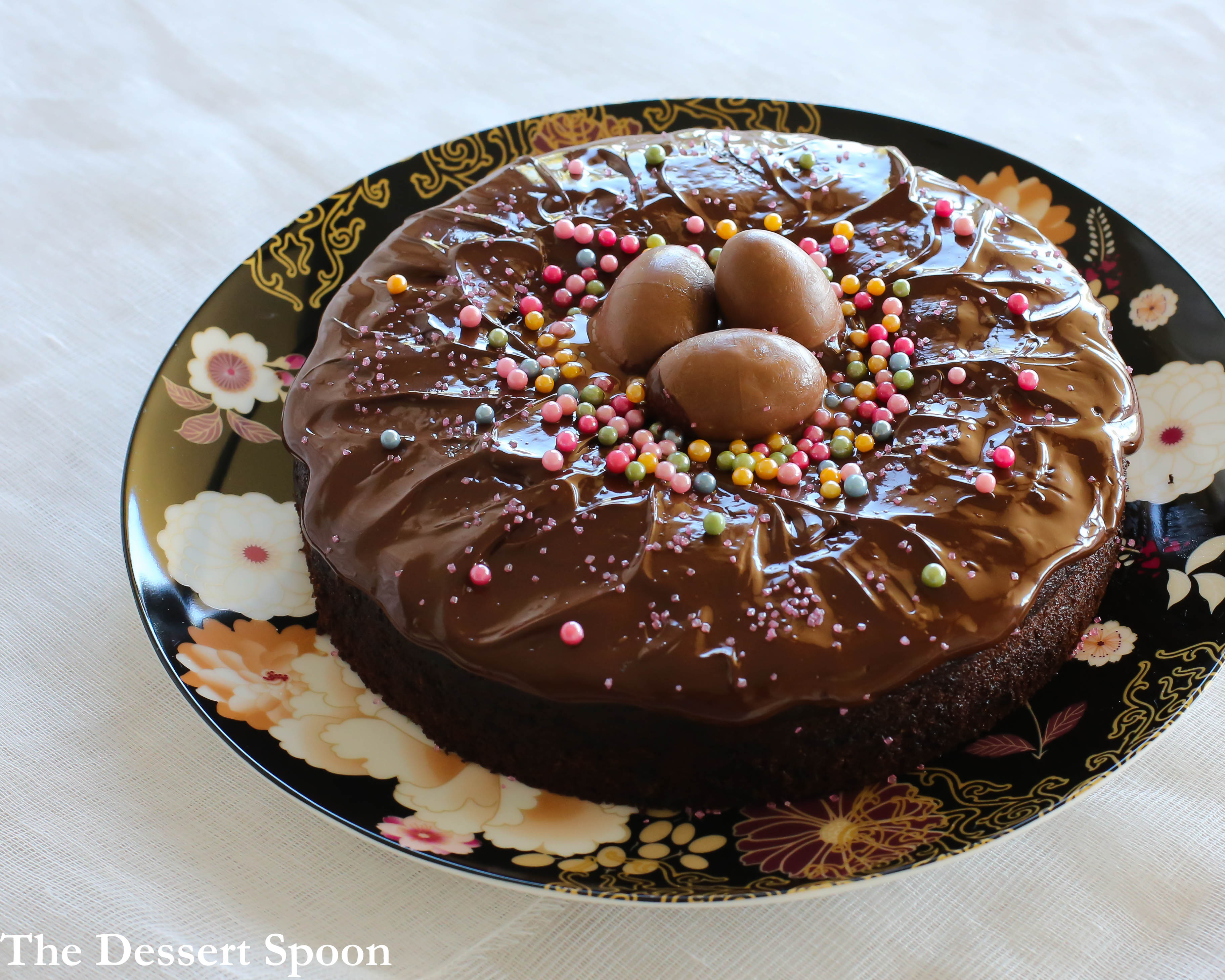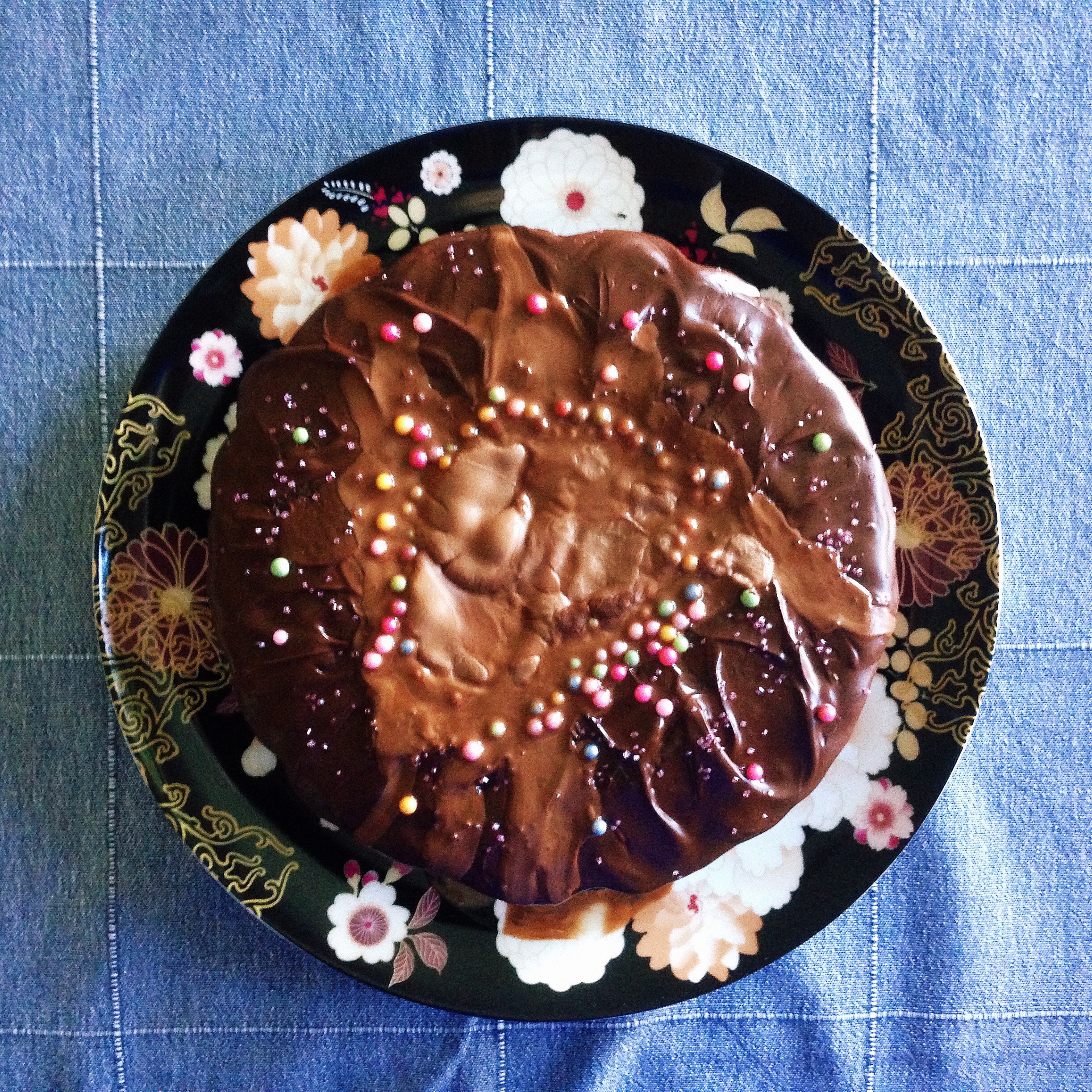 I made the cake in the picture for Easter Sunday lunch so of course I decorated it with chocolate eggs. It’s still really warm in Brisbane though and by the time I arrived at my parent’s house it looked like this!