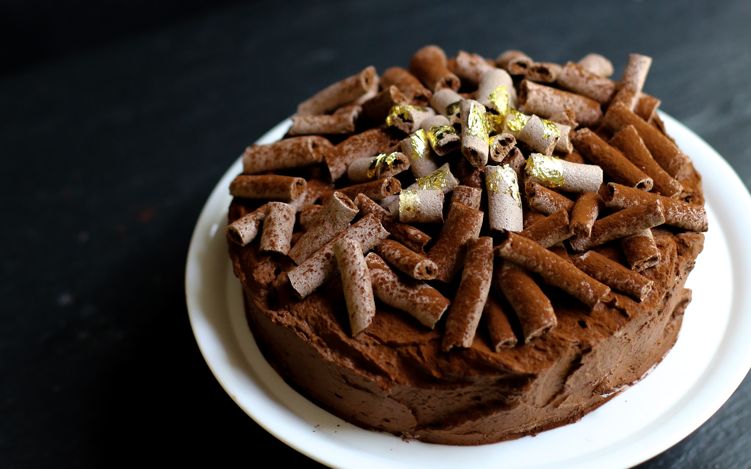 I also added some gold leaf as garnish to add a touch of luxury befitting such a cake. At a cost of $5.50 a sheet of gold leaf is an affordable luxury and adds a lot of “wow” factor. It wasn’t difficult or time consuming to add the gold leaf but certainly does require a light hand and some patience. Some may not have the temperament for this. The original Concorde Cake isn’t served with gold leaf so this may be omitted without any concern.