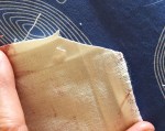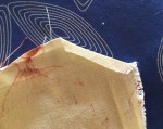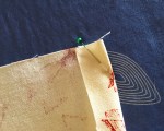 With one piece of fabric (with the right side facing down) fold the edge in 2cms (4/5 inch) all the way along; pin; iron. Repeat on all sides. Don’t worry too much about the corners at this stage; that will be revisited later.