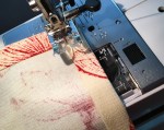 Now you are ready to sew. Start in the middle of any side. Stitch a single line all the way around, pivot turning at the corners; back-stitch a little at the start and finish.
